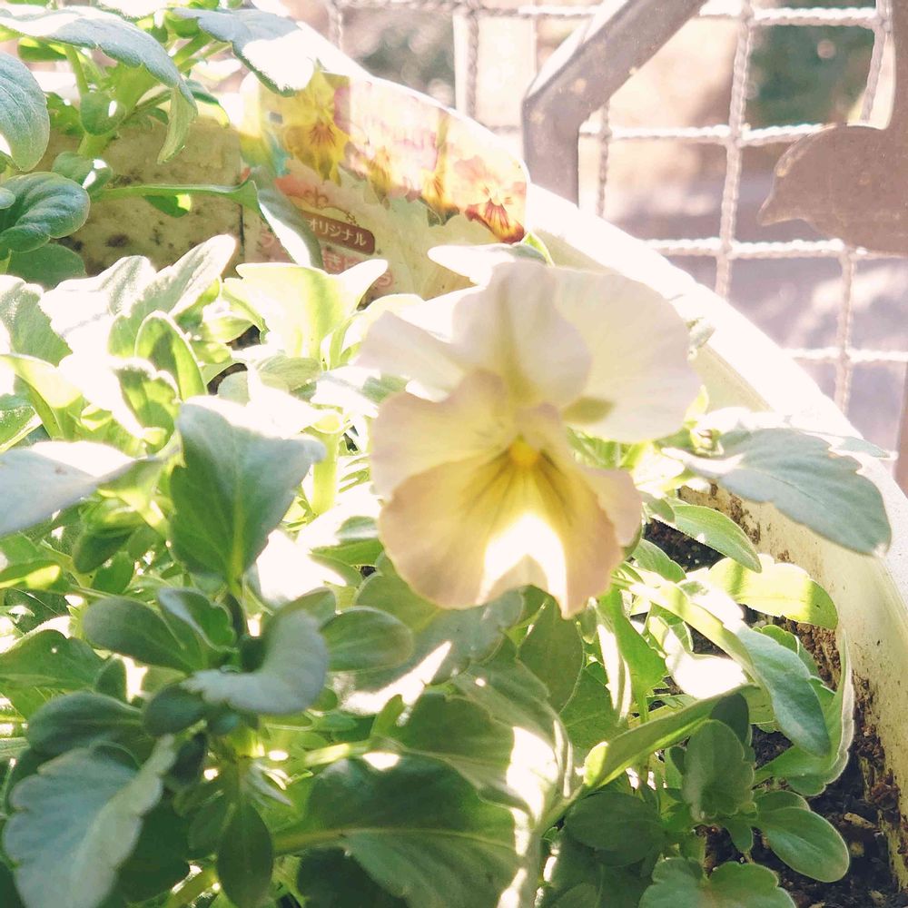 やっ~と最初に寄せ植えしたパンジーに花が咲きました。