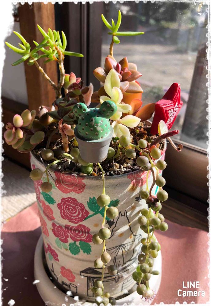 ふぅさんのムーミンリメ缶の多肉ちゃん達も小さくなりましたが元気ですよ〜💕
