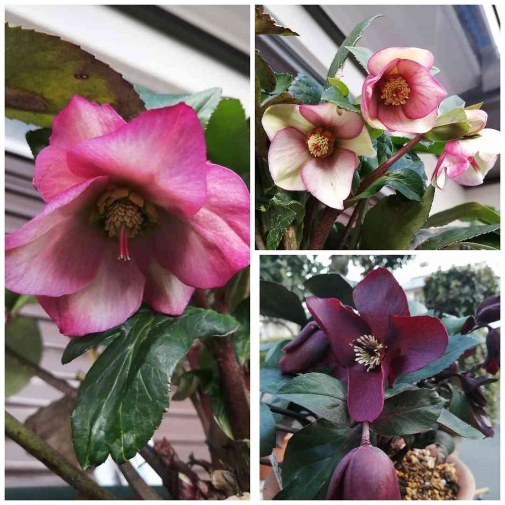 なかなか咲かないわが家のクリスマスローズ。台に置いて下からパシャリ。イタリアーノシリーズ、蕾がすくないです。
