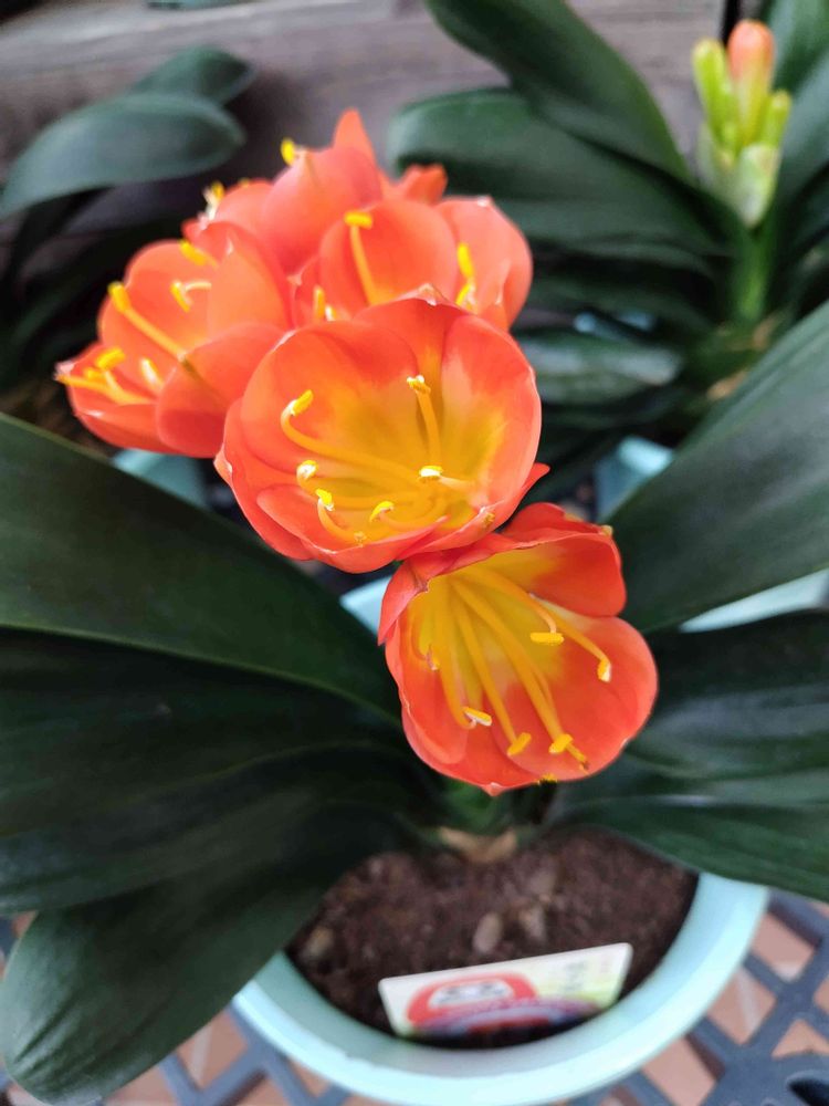 園芸店の君子蘭ダルマ やっぱり綺麗に咲きますね🤗我が家のダルマちゃん花芽が少しだけ見えてきたよわ~*。٩(ˊᗜˋ*)و*。~い!!٩(。•◡•。)۶