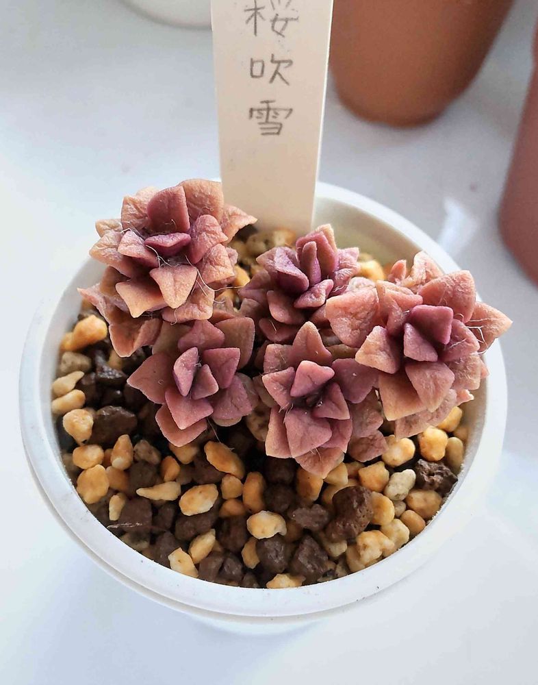 パッと見、桜吹雪には見えないのでは…というくらいしわしわですが🤣(笑)暖かい室内と、素焼きに比べると乾燥の少ないプラ鉢の相乗効果で桜吹雪らしさを取り戻してくれたら…😂🙏