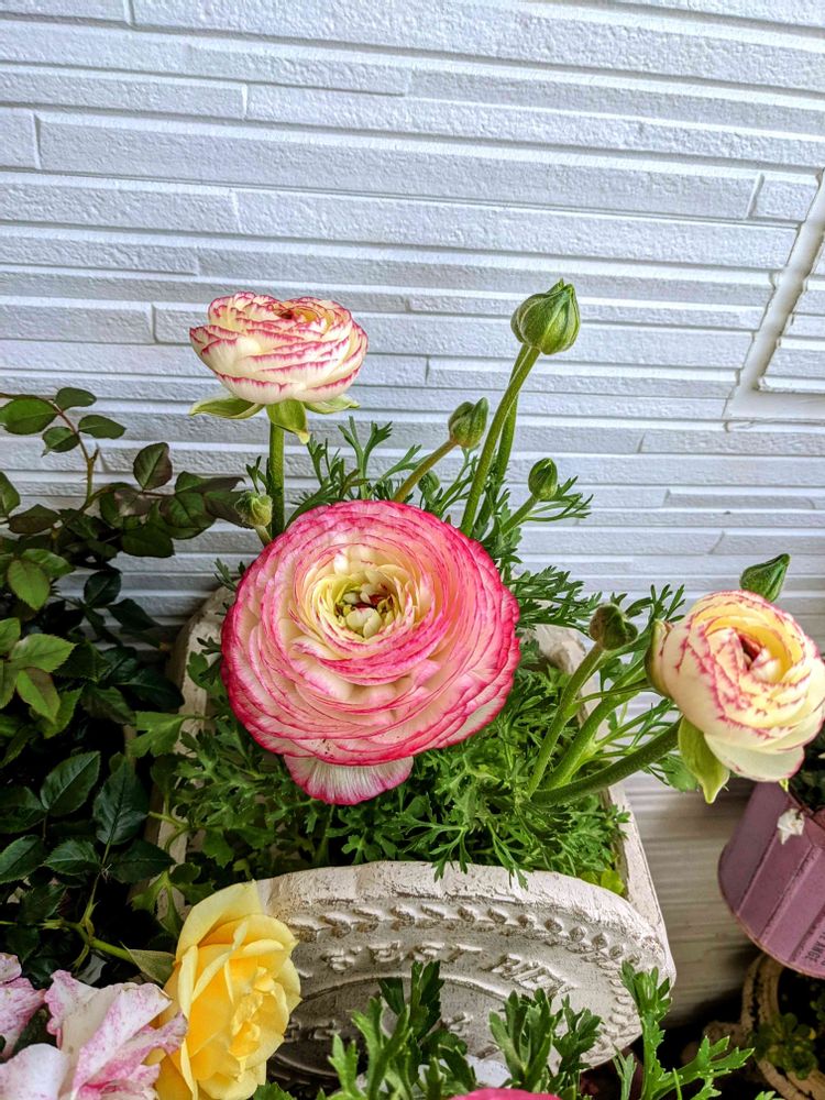 ラナンキュラスフチ側赤ピンク3日前は一輪でしたが今日3輪になりました😆