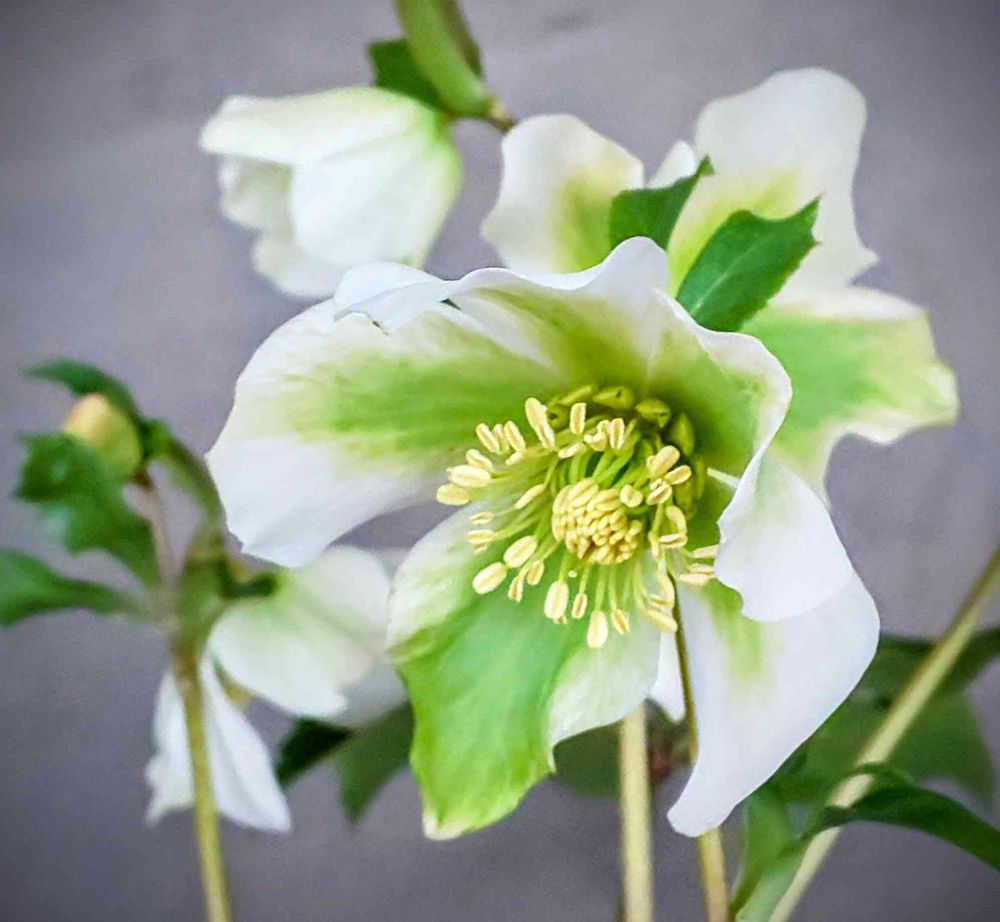 お洒落な配色のクリスマスローズ🤍🟢🤍