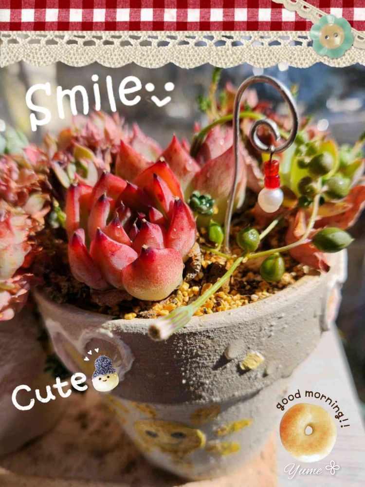 寒さで多肉さんもイチゴ🍓みたいに真っ赤だね💕