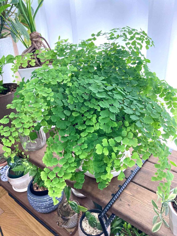 アジアンタムはシダ類なので、元気に育つのは適度に明るさのある日陰ですね〜
