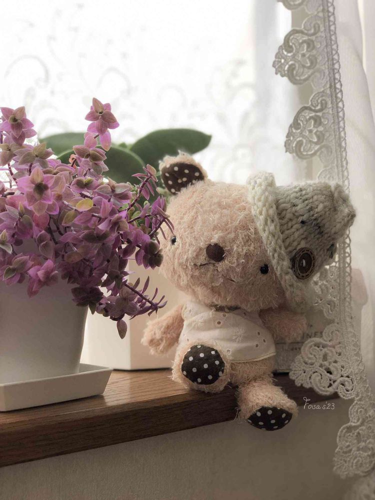 ニット帽のかぶりかたが、またまた癒される🐻✨