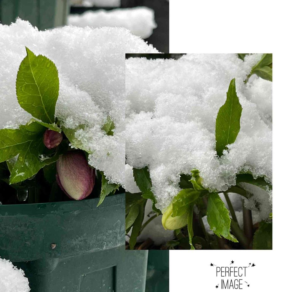 地植えも鉢植えも、クリスマスローズの蕾は雪に埋もれました🥲