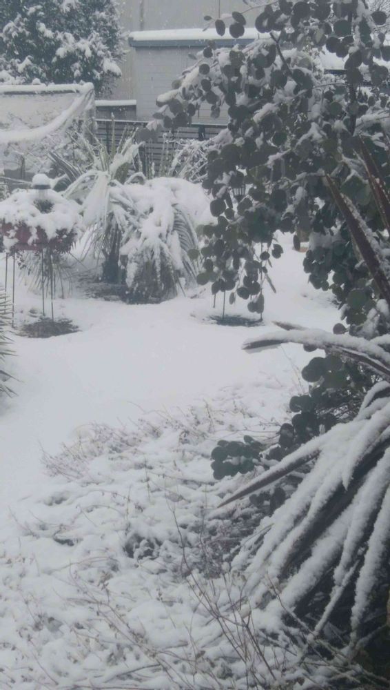 ユーカリとか ヤシ🌴の木が 雪の重さで やられてますわぁ😓
