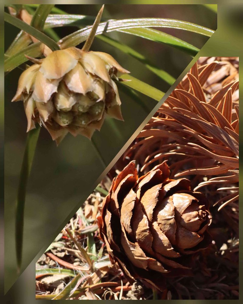 昨日ウォーキングを兼ねて出かけた植物園でコウヨウザン(広葉杉)の花芽(⇦)と地面に落ちている球果(⇨)を見ました。開花時期は4月。