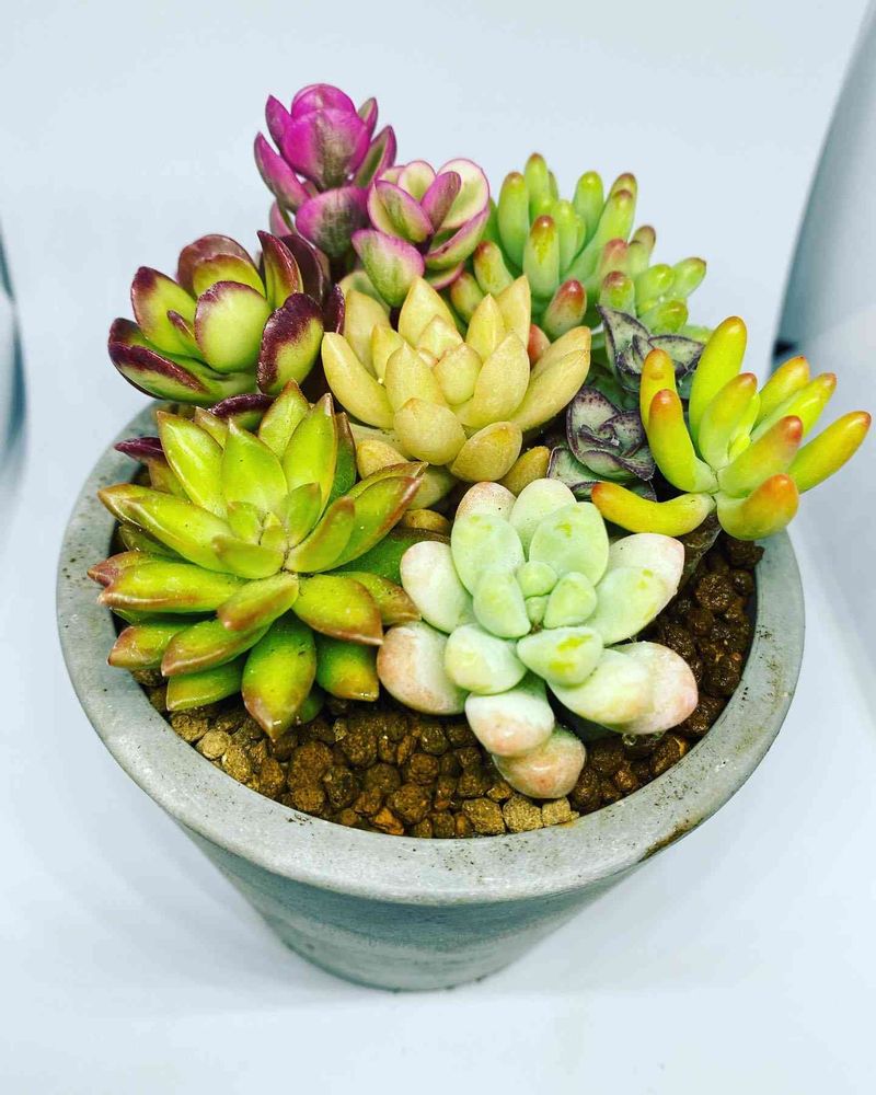 カラフルな多肉を集めて寄せ植えにしました。やっぱり赤系の多肉は寄せ植えにすると映えますね😄