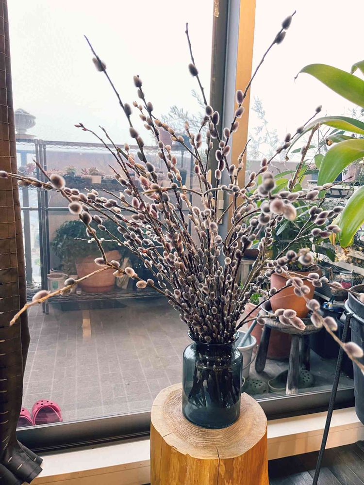 雨降る中JA渡り歩いて探したネコヤナギ。いっぱい買えた!穂が開いちゃうと可愛くなくなるので水にはつけません。ごめんね、でも長く楽しむよ。
