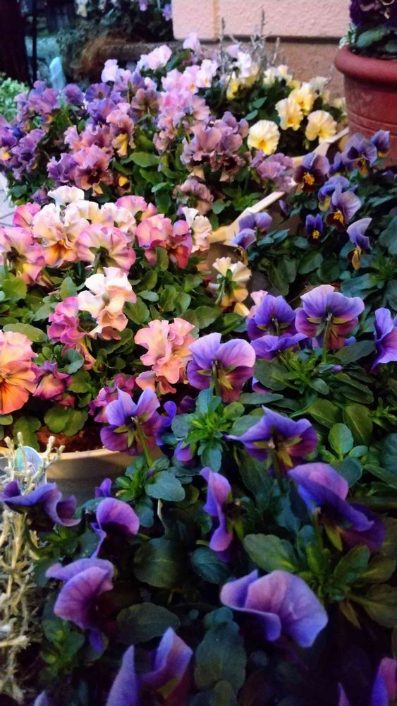 華やかな花色のパンジービオラばかりだから街灯がいらないね✨