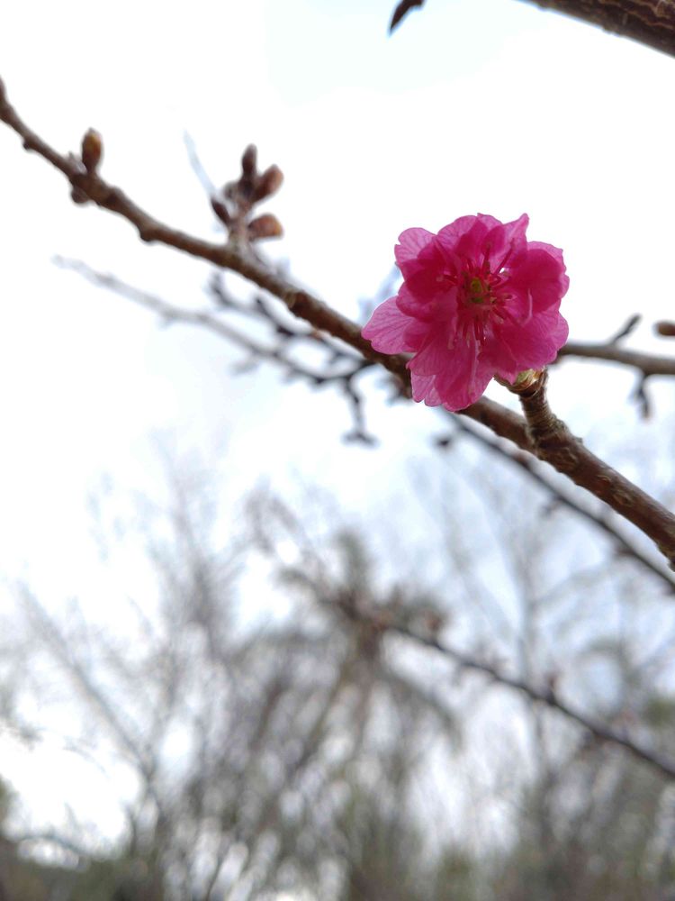 凄い濃いピンクの、しかも八重咲きなので、カンヒザクラ(寒緋桜)系統のサクラなんだろうけど、名前は判らないなぁ😅