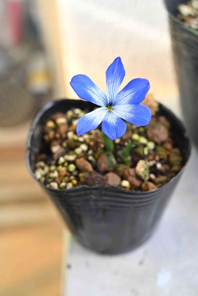 青のお花が好きなのです!一目惚れ💕 渋目のおしゃれな鉢に植えてみてはいかが❔