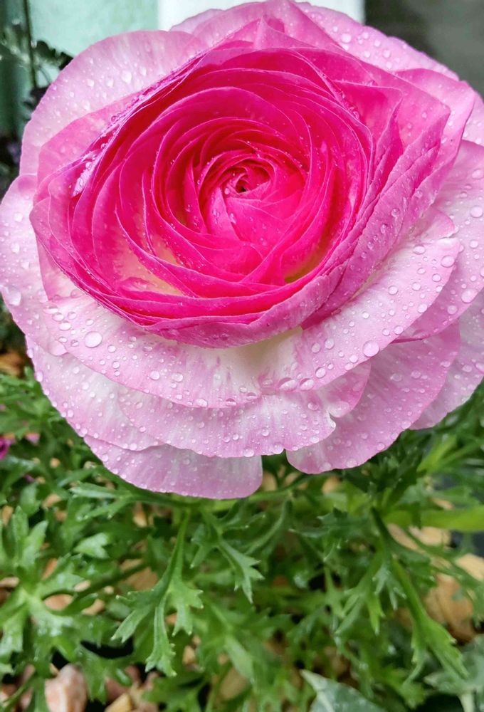 雨に濡れたピンク色のラナンキュラスはカワイイ🎶