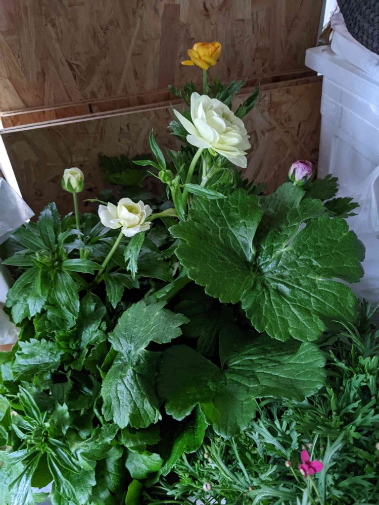 作業ができないので、朝からお店をはしごしてきました。ラナンキュラスラックスをいくつか購入できました😄