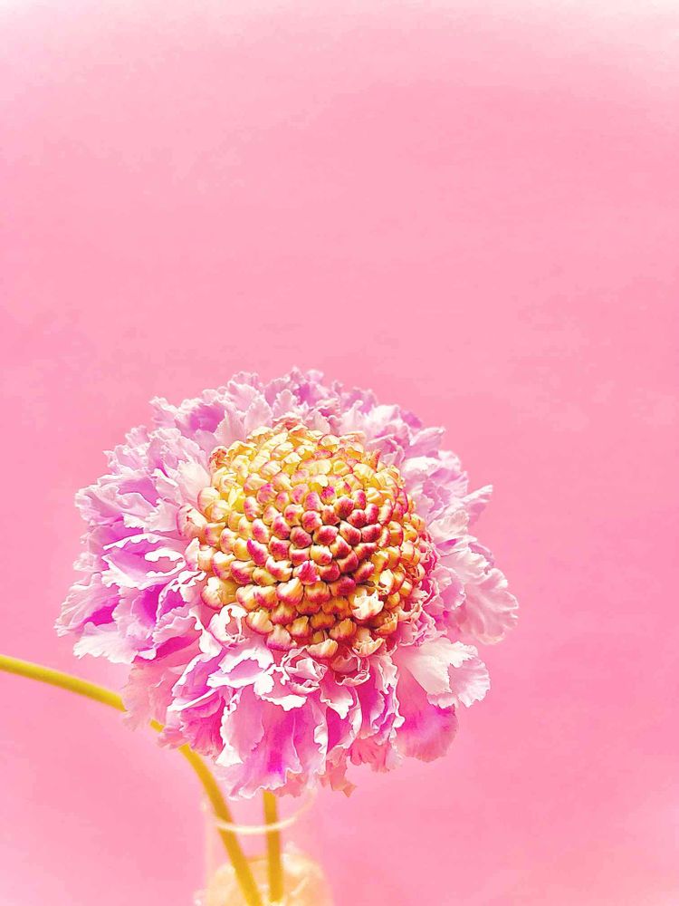 ピンクのスカビオサと、バックのピンクのグラデーションがとっても綺麗ですね💗
