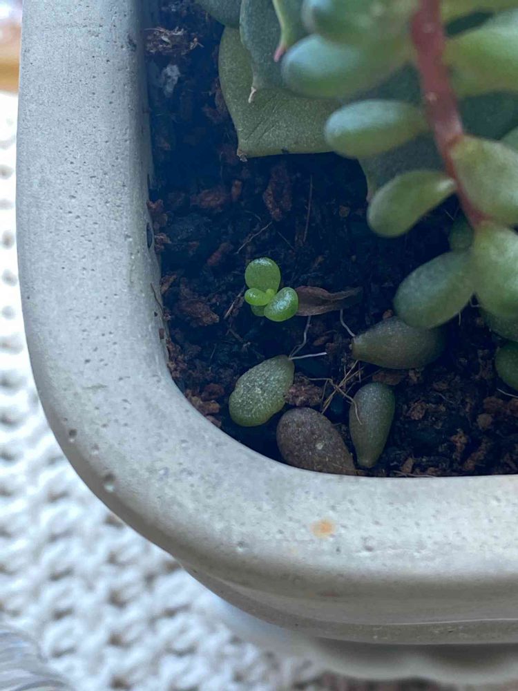 こぼれ落ちたレッドベリーの葉から新しい芽が🌱