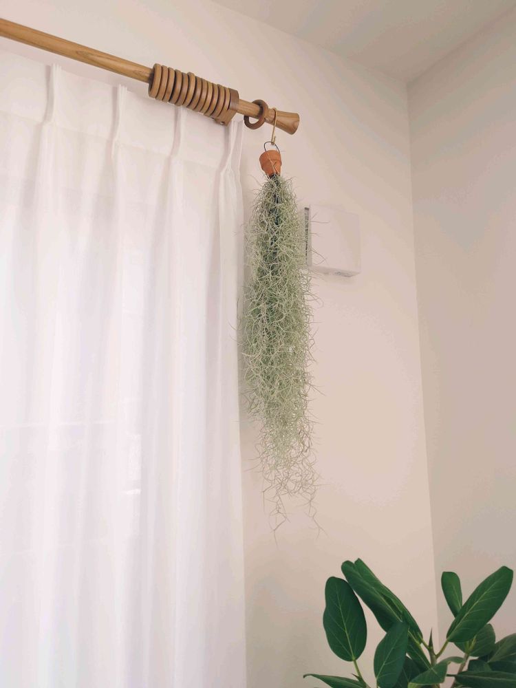 カーテンレールに エアプランツをS字フックで引っ掛けただけです★