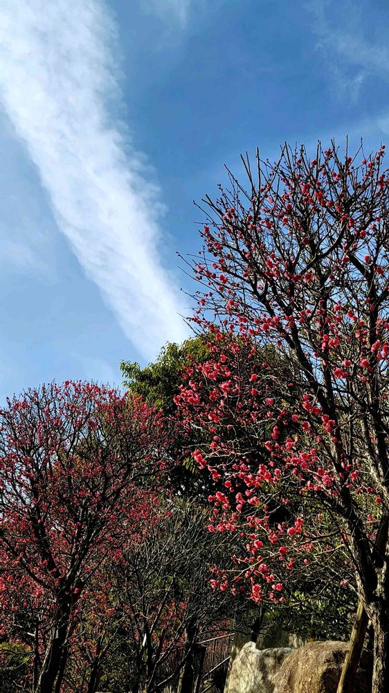 梅もきれかったけど飛行機雲が存在感ありすぎ👀