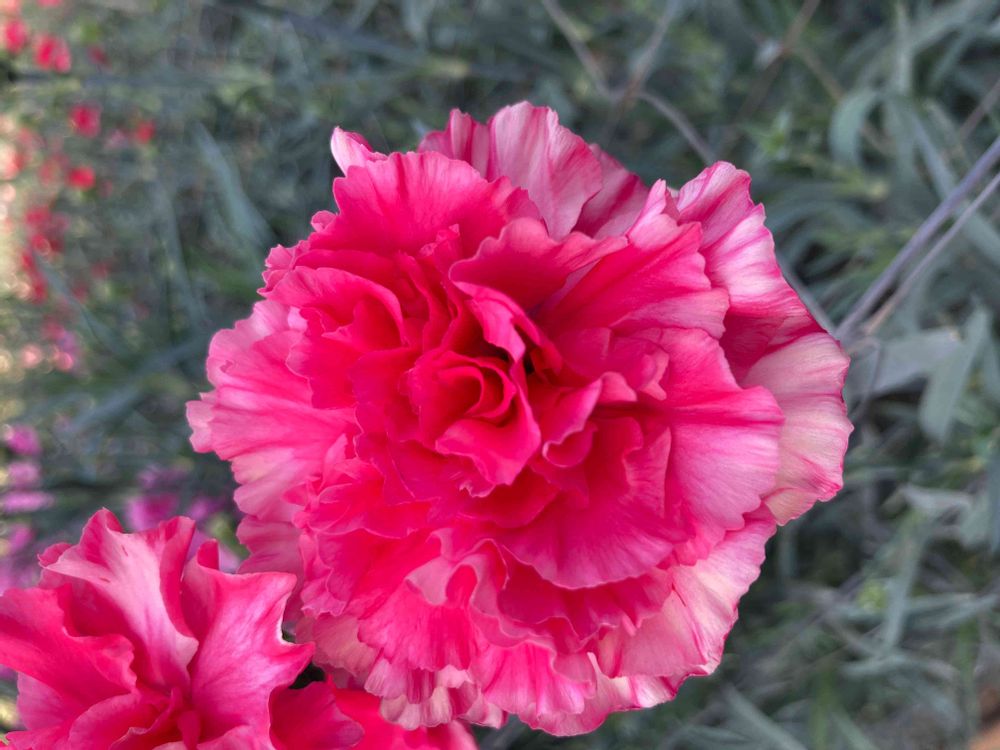 こんばんは😊カーネーション チェリー、河津カーネーション見本園にて。まだ市場に出回ってないかも⁉️滲んだようなオシャレな色合い、めちゃ素敵です‼️