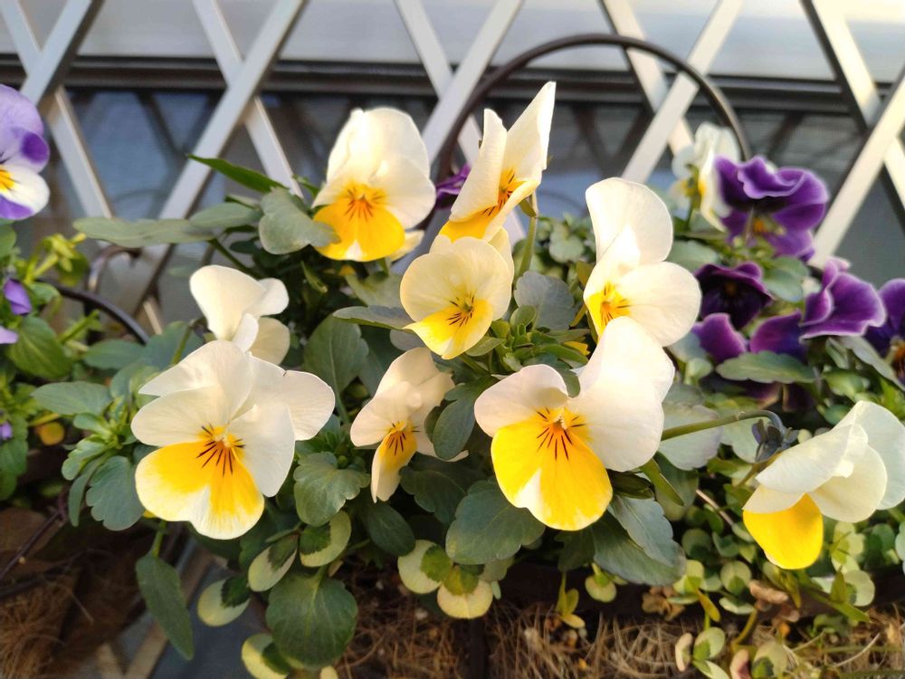 玄関,ビオラ クリームイエローリップ,寄せ植えの投稿画像