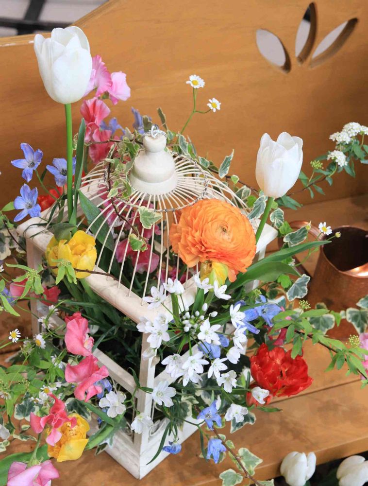 白い鳥籠とのカラーハーモニーが、素敵ですね💕