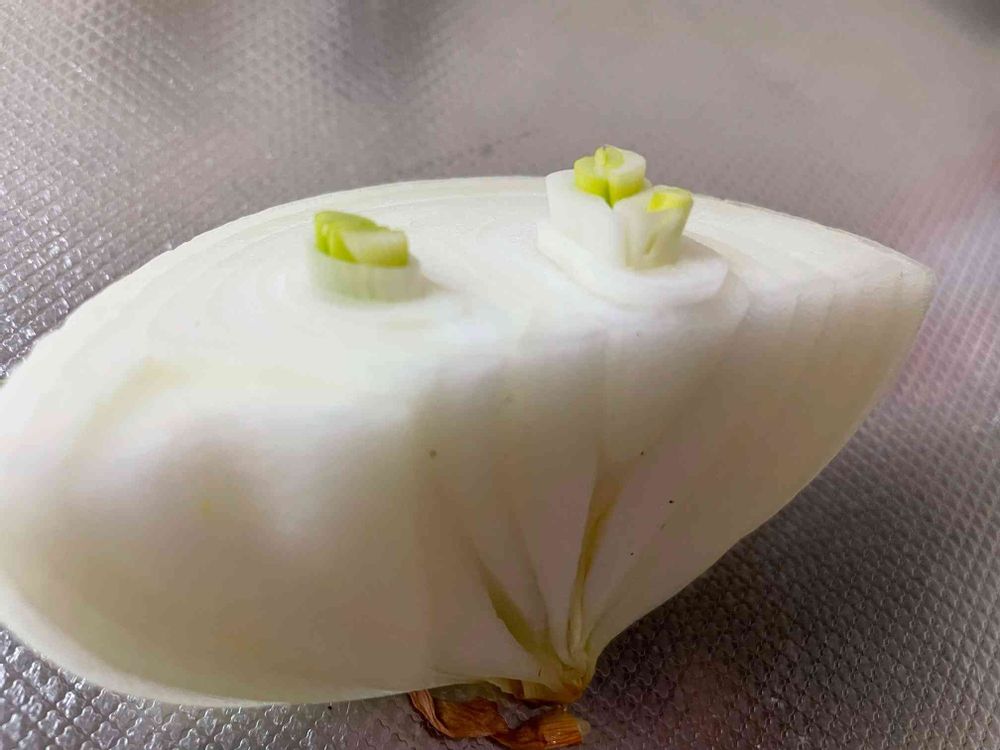 これはもう芽が出ようとしてる、ひねたタマネギなんだよね🌱