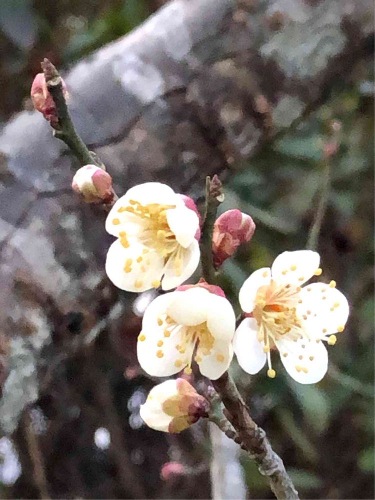 いつの間にやら…庭の梅の花がチラホラ咲き出していました😃