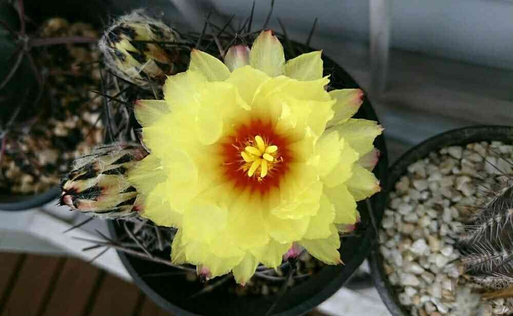 ホントに不思議ですよねえ、荒ぶるトゲをかき分けてこんなに繊細な花が咲くなんて(´ー`)