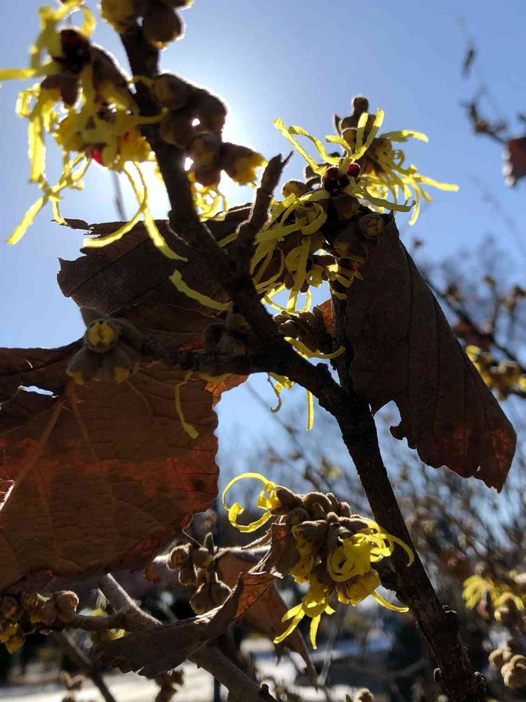 やっとマンサクが蕾から、花を付けてきました。😊👍🎶