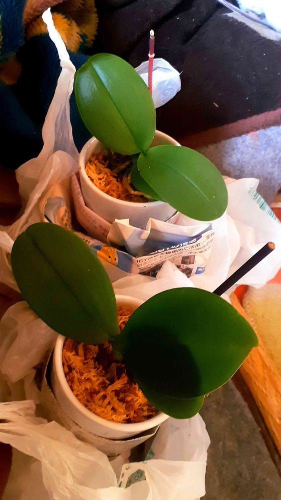 おチビ胡蝶蘭達。買った時、苔がべちょべちょに濡れてた事もあって、夜の霧吹きしかしてなくて、朝明るくなったら外気浴で出すと。