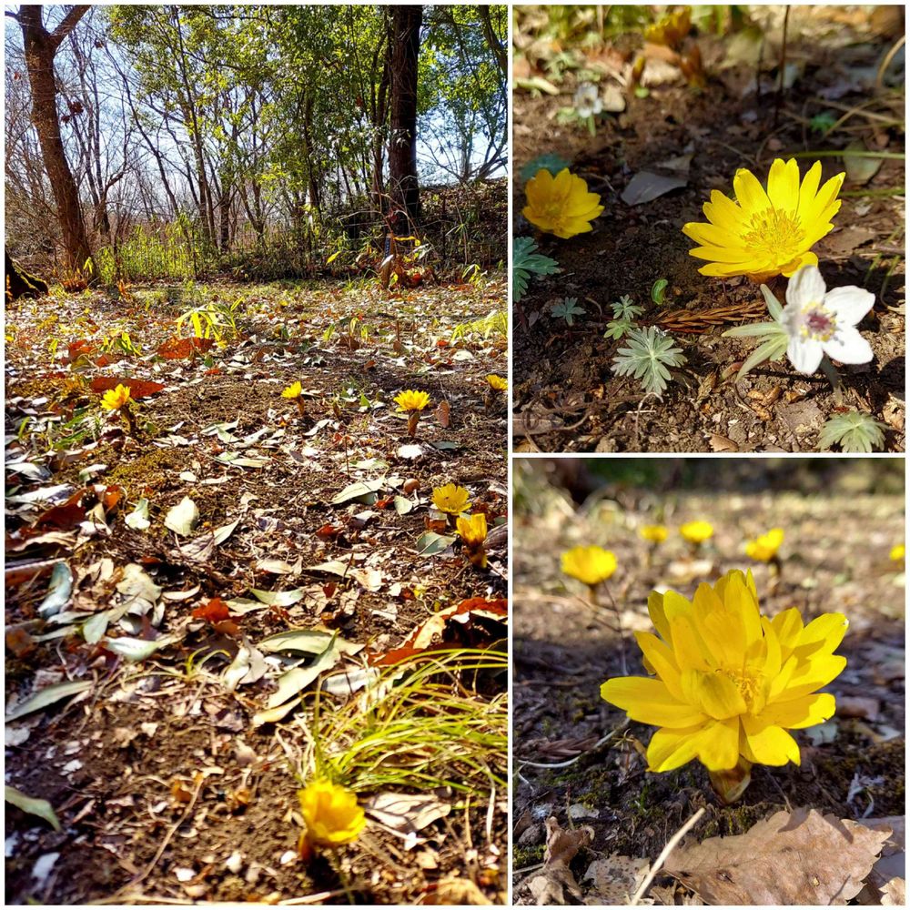 春めいてきて💞昨日投稿の節分草の隣に福寿草もたくさん咲いていて💛💛✴️コラボも見られました😊💖