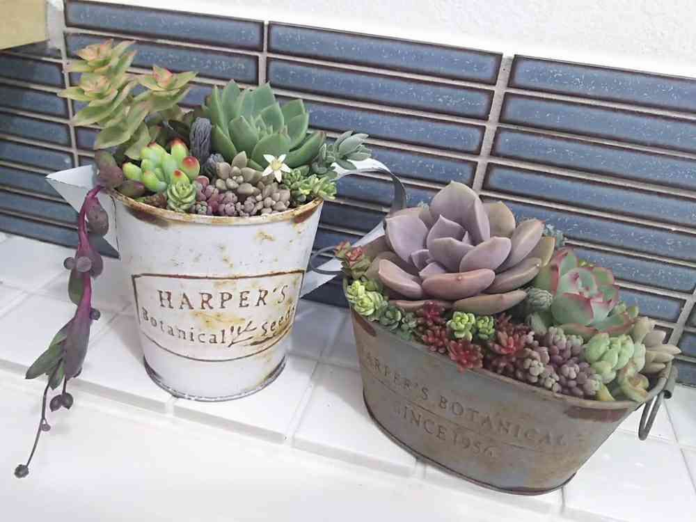 この前セリアでミニ工具箱と一緒に買ってきたブリキ鉢に寄せました🎵