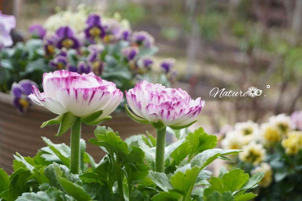 ピンクの縁取りがかわいいラナンさんですね、茎もしっかりしていて元気そう、長く楽しめますね。