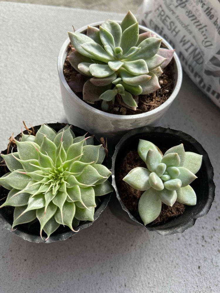 元々の土をつけたまま、一緒に買ってきたダイソーのプラ鉢に少し土を足して植え直す、みたいな。一応そのやり方で、約2ヶ月大体の植物は元気に生きてる感じです😁✨