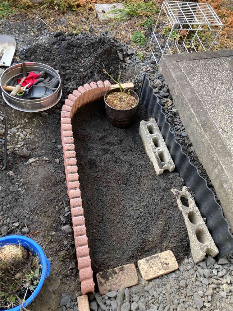 私も先日花壇造りましたが、この冬までゴツいつる薔薇を地植えしていた場所で、太い根っこがまだ残ってる状態🥲
