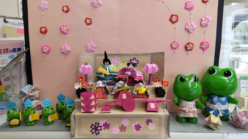 折り雛とケロちゃん、お道具、ぼんぼりまで、良くできています❣️