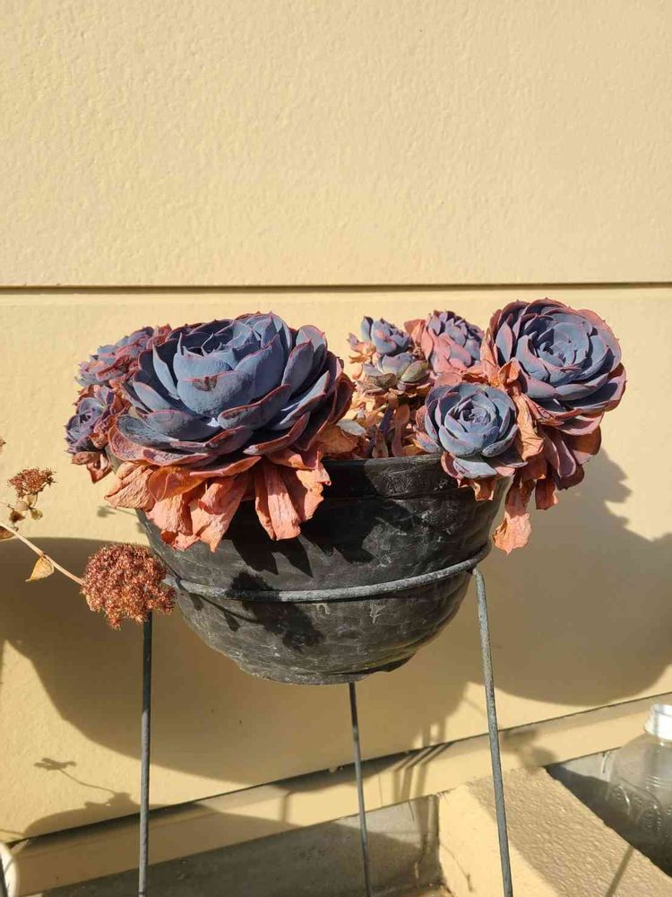 我が家の外の七福神も霜にあたってこの状態になりました・・もう駄目だと思うので片付けました😓