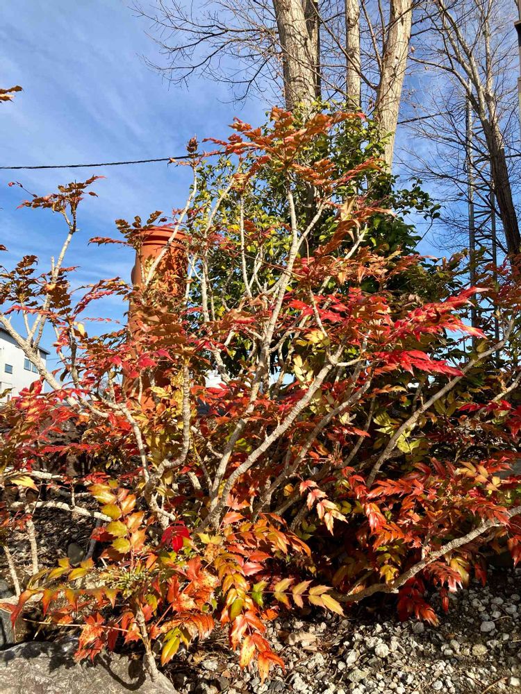 私の近くの林で見たのですが葉はこんなに紅葉してなくて緑色でした。