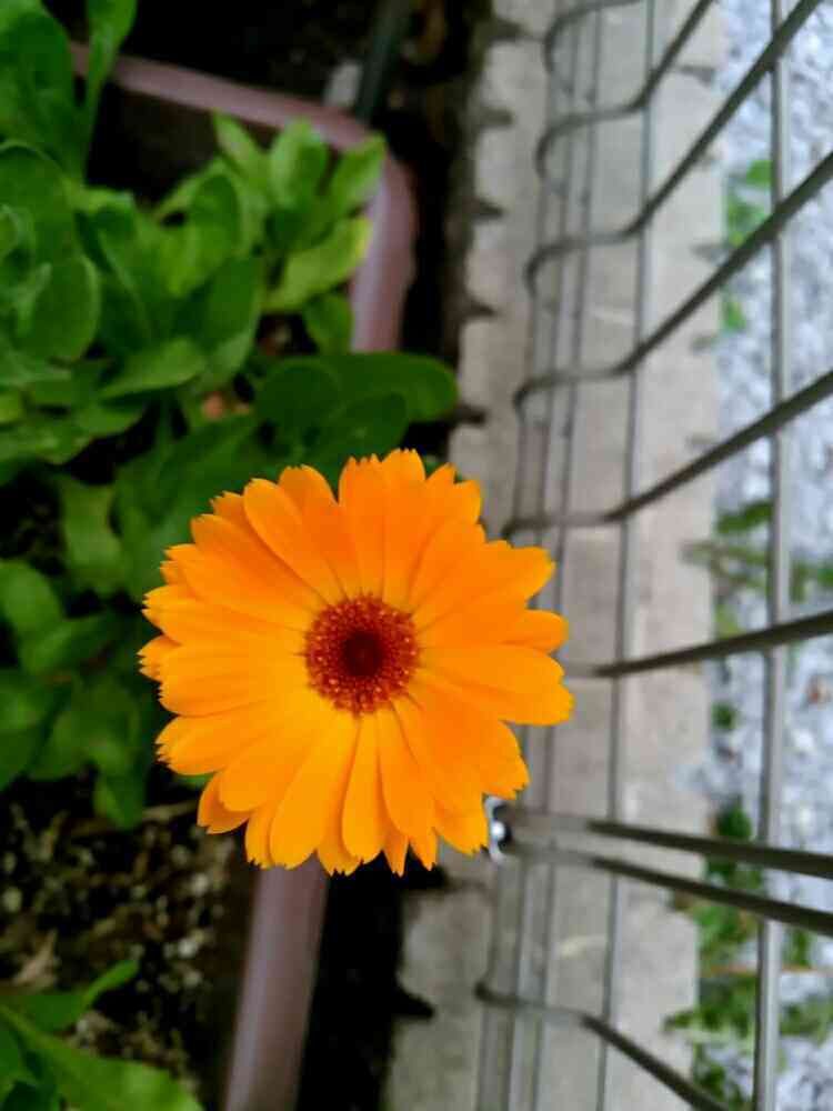 ポットマリーゴールドの花びらむしってハーブティー飲みました☕