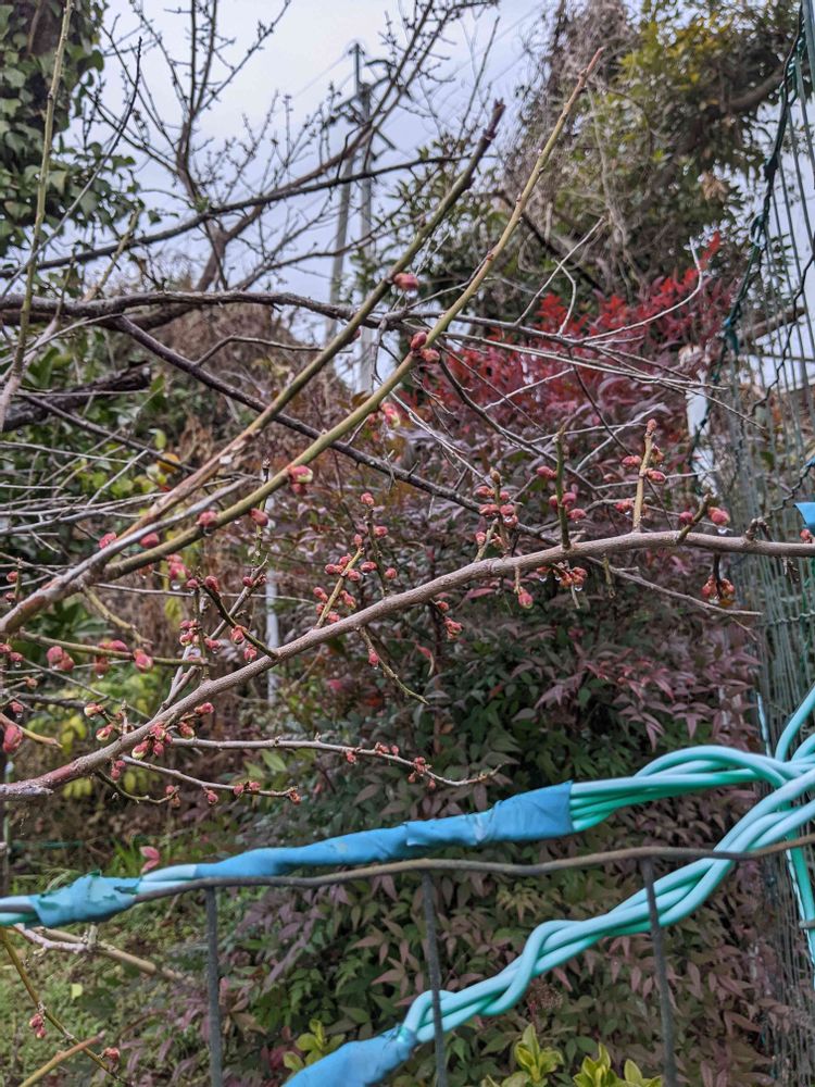 畑より、小梅の蕾。昨日は雨が凄かった。今朝はやみ風が強いです。🙄🤯