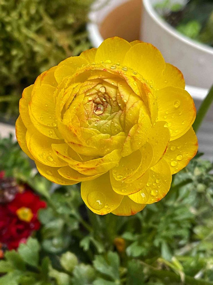雨の中☔️、とてもキレイなラナンキュラス🌼🌼🌼さん。 パッと見、薔薇のように見えますねー❣️❣️