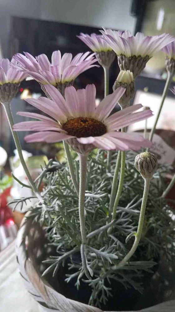 優しい色のローダンセマムさん…もう二鉢あるのょ…また見てね~白い色🤍と薄オレンジ🪷