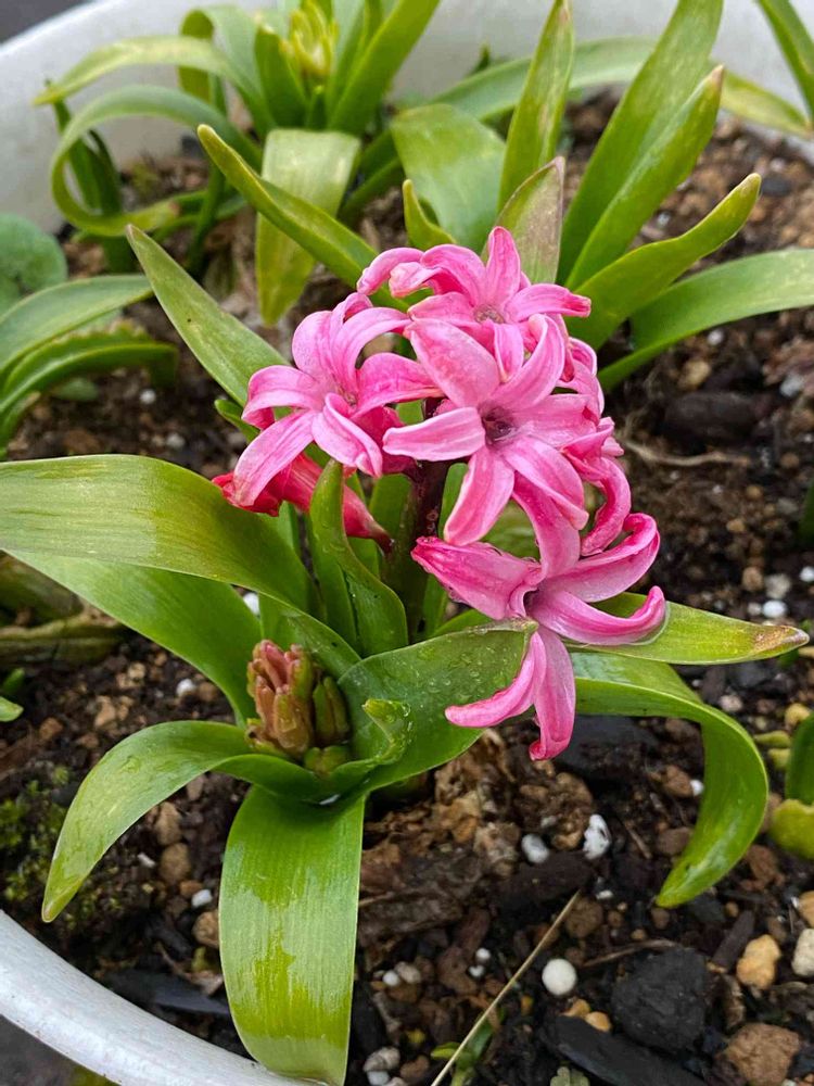 秋に少し深めのプランターに植え替えました。スイセンが咲いて、ヒヤシンス、ナランキュラスはまだのようです😂