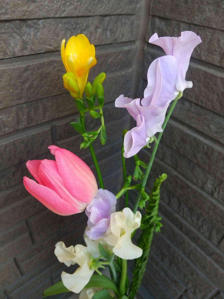 ふうふうさんの玄関,スイートピー,チューリップの投稿画像