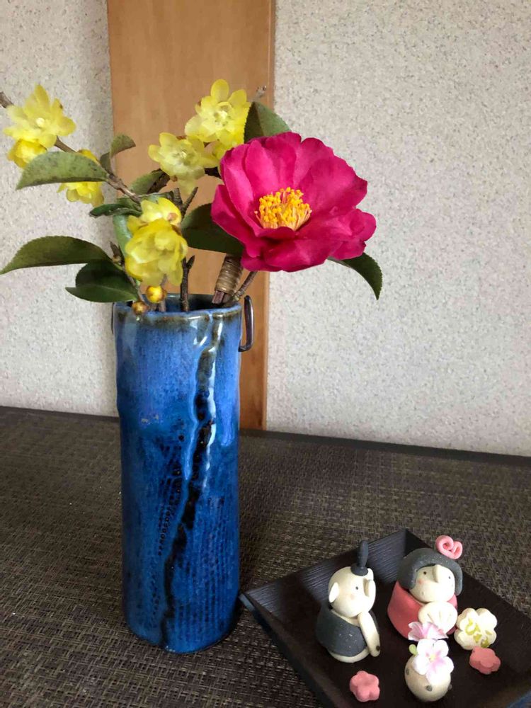 ロウバイの香り大好きなんです。他の花瓶にも生けましたが、地域の直売所で一束100円でした😊