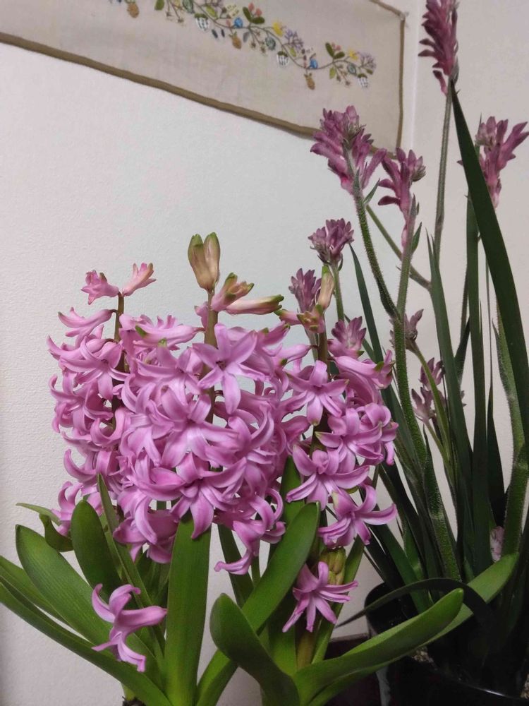 素敵な刺繍に🪡、良い香りがするヒヤシンス🥰💕、良い部屋ですね。