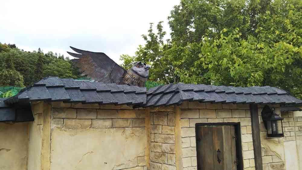 モルタル造形の屋根の上にワシ?のオブジェ👀