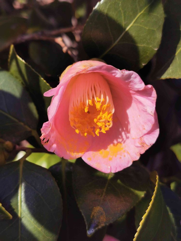 暖かい日差しを浴び、寒風に吹かれながら、鮮やかな装いの花を咲かせる椿の華やぎ素敵だなぁ~🎵